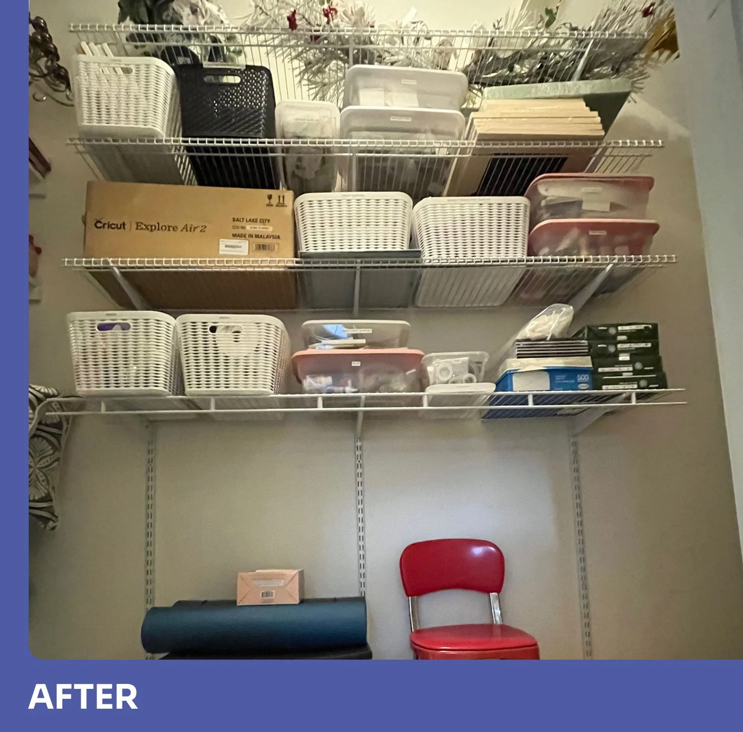 This closet was nicknamed the Harry Potter Closet, not just because it was under the stairs, but also because items would enter the closet only to magically disappear, never to be seen again. It was originally intended to be a linen and craft closet with a little extra space for holiday decor that the homeowner didn’t want stored in the attic. However, over the years it had become a dumping ground.
