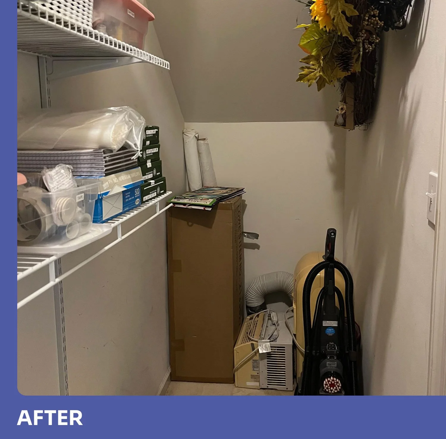 I worked with the homeowner to purge unneeded and unwanted items, find new homes for items that did not belong, and organize what remained.